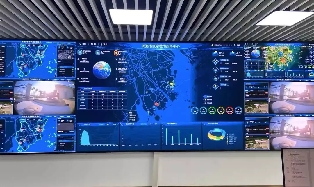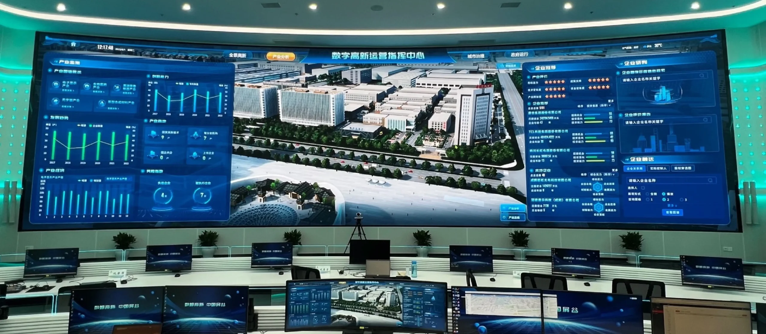 Real-time display of urban operations, environmental, and security data to enhance management efficiency.